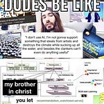 another example of a psychological fracture in the animation community is their psychosis over the concept of โsucking dickโ towards me. The blogger Ran Prieur wrote a satiric story about the corporate world being full of the expectation to metaphorically suck dick I loved as a teenager - but I never actually spoke about it to others. That was an example of the shadowy side of online discussions: they abused me for having the worldview of someone who loves that metaphor, but I never abused them for perceiving them as โsucking dick,โ so they forced me into situations where my dominant personality looked awful so they could make me look like I was abusing them about it.
